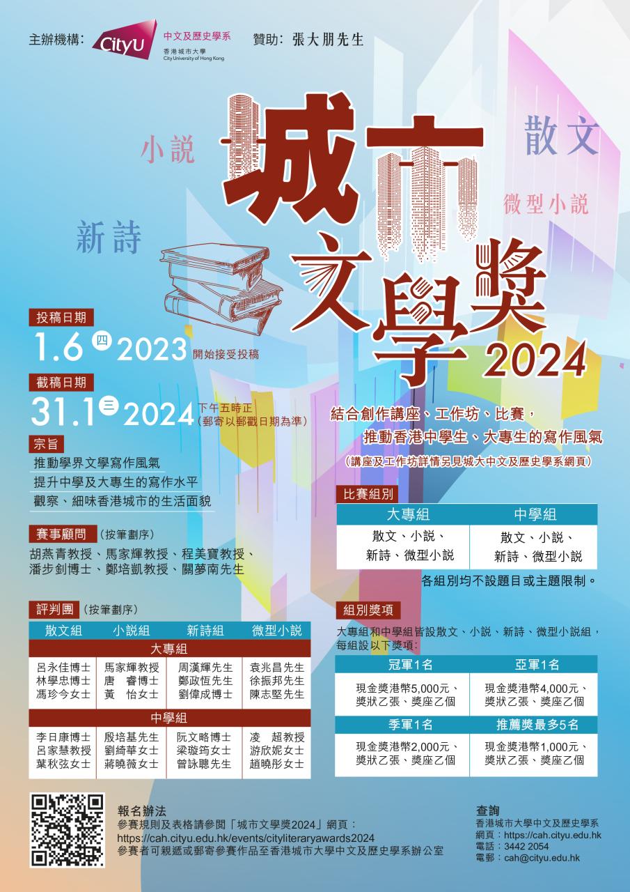 The City Literary Award 2024, organized by the Department of Chinese and History at the City University of Hong Kong, aims to promote literary writing in academia.