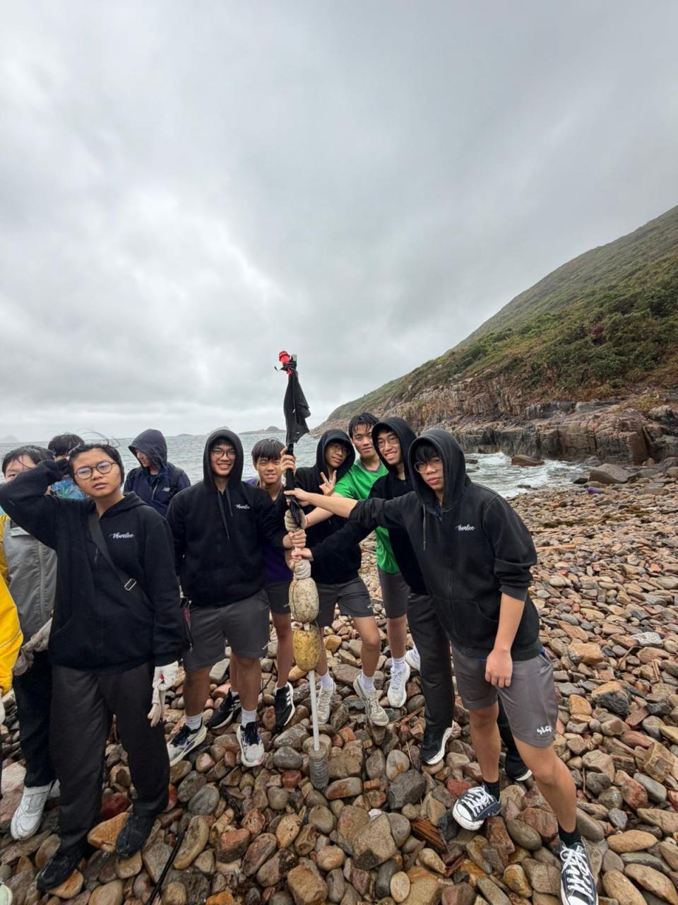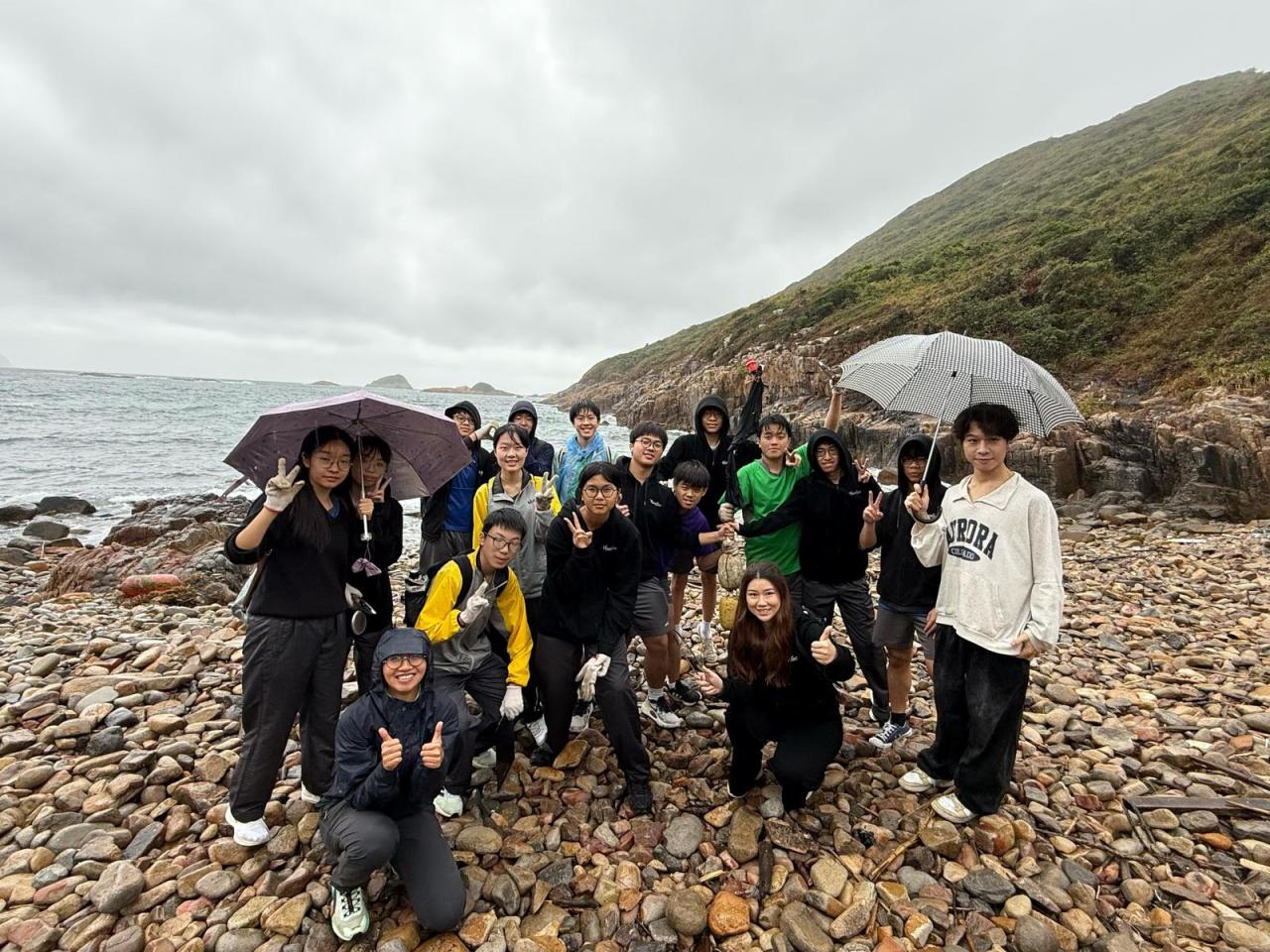 Even with grey skies and powerful gusts of wind, a group of conscientious students showed that a little rain wouldn't stop them from helping the planet. On 28 February, 2026, they headed to Lung Ha Wan for a clean-up that turned into a real lesson in taking care of nature. Even though the weather was rough, everyone felt like they were doing something that was purposeful. They got soaked and wind-blown, but they spent an hour picking up stuff like plastic bottles and old fishing gear.